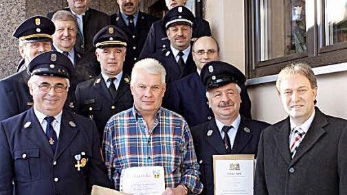 Thomas Stark und Josef Zwosta wurden für 40-jährige aktive Dienstzeit bei der Feuerwehr Tschirn mit dem staatlichen Ehrenzeichen in Gold ausgezeichnet. "Die...