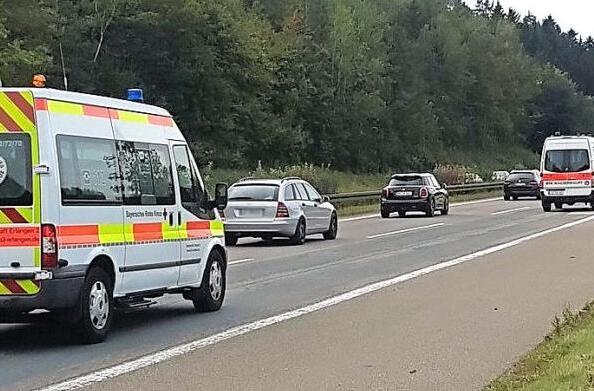 Glück im Unglück hatte ein Autofahrer auf dem Autobahnzubringer zur A 3. Aufgrund gesundheitlicher Probleme verunglückte er kurz vor der ersten Marschkolonne, die ihm sofort mit der mitfahrenden Notärztin zur Hilfe eilte.