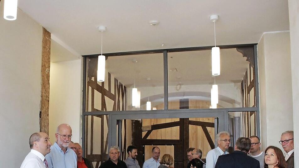 Bei schönem Wetter kann schon bald das Rathaustor zum Schlüsselfelder Marktplatz hin weit geöffnet werden. Denn der Umbau des Erdgeschosses ist beinahe fertig. Anlass für Bürgermeister Johannes Krapp (CSU), die Stadträte vor der Sitzung zu einer Besichtigung einzuladen. Sie hätten ja den Umbau mitgetragen, sagte Krapp, verbunden mit seinem Dank an die Stadtväter.