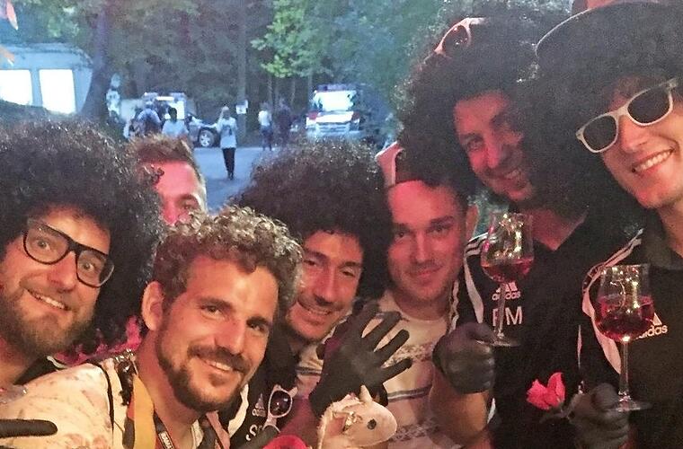 In lockerer Runde freuen sich Lutz Reinhold, der geistige Vater des Phantasiewesens "Paul der Gaul", und seine eifrigen Mitstreiter darüber, dass alle Lebkuchenherzen für den guten Zweck schon vor dem Annafest-Finale ausverkauft waren.