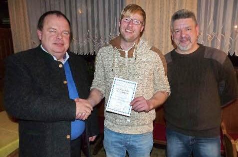 Die Auszeichnung von Frederic Hildner mit der Silbernen Ehrennadel für 25 Jahre erfolgreiche Zugehörigkeit zum Verband der Bayerischen Rassekaninchenzüchter war das Highlight der Hauptversammlung des Kleintierzuchtvereines