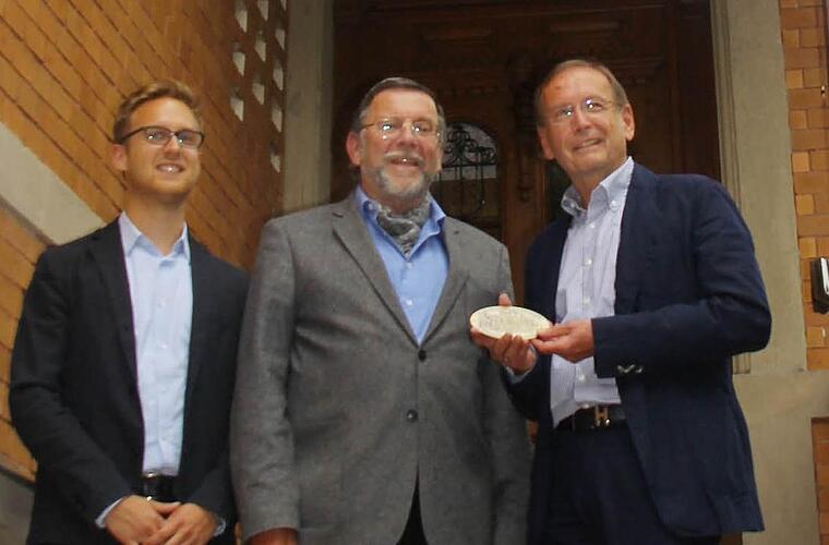 Bei der Werbeagentur Müller in der Seifartshofstraße 8 konnte Eidt am Donnerstag ebenfalls die Sanierungsmedaille übergeben. Geschäftsführer Wolfgang Müller nahm zusammen mit seinem Sohn Phillip Müller die handgroße Medaille in Empfang.