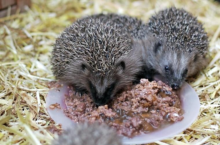 Gerade jüngere Igel können fürs Überwintern unterstützt werden, indem geeignete Nahrung zugefüttert wird, informiert Britta Merkel. Aber Obacht! Igel sind reine Insektenfresser und können mit Obst, Nüssen oder gar mit Milch nichts anfangen. Milch kann sogar tödlichen Durchfall verursachen. Besser ist ein hochwertiges Katzenfutter mit hohem Fleischanteil und ohne Getreide (Billigfutter enthält meist nur vier Prozent Fleisch). Gerne verspeisen die stacheligen Zeitgenossen auch gebratenes Rinderhackfleisch mit etwas Rührei (ungewürzt).