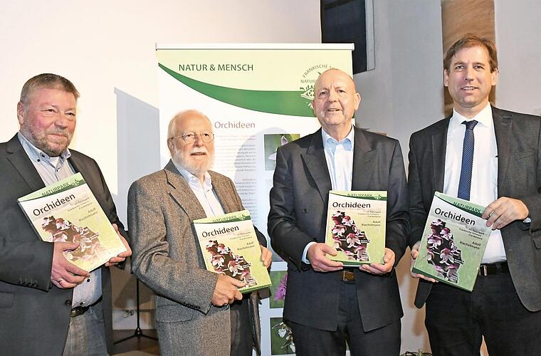 Landrat Herrmann Ulm (CSU) bedankte sich in seiner Funktion als Vorsitzender des Naturparks für das Werk und konnte auch Wolfgang Geißner vom Naturpark und Walter Welß, den Leiter des Botanischen Gartens der Universität Erlangen, begrüßen. Dieser lobte in seiner Laudatio Adolf Riechelmann als einen der besten Kenner der Orchideen und ihrer Wuchsorte.