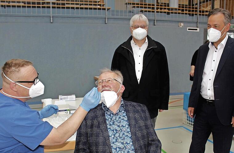 Organisiert hatte die Testmöglichkeit Holger Vogel, CSU-Marktgemeinderat und Inhaber der Wachenrother Gesellschaft IFS-Sicherheitstechnik, die auch auf dem Gebiet der Arbeitsmedizin tätig ist. Bürgermeister Friedrich Gleitsmann war einer der Ersten, die sich testen ließen, Landrat Alexander Tritthart folge.