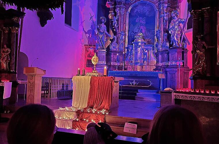 Nach der Vorabendmesse (Beginn um 19 Uhr) ist je nach Belieben und zeitlicher Möglichkeit ein Kommen, Gehen und Bleiben in der stimmungsvollen Atmosphäre möglich. Die Technikgruppe mit Marvin Heienbrock hüllt die Stadtpfarrkirche wieder in ein besonderes Lichtgefüge.