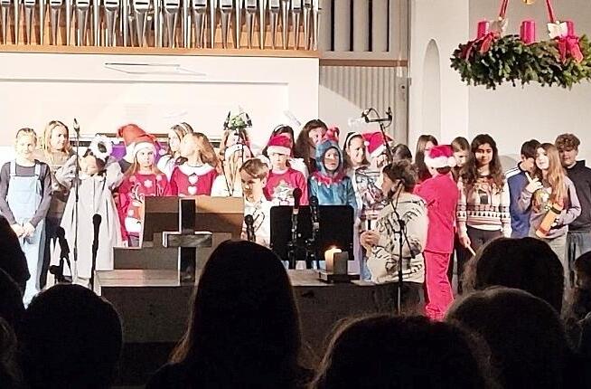 Mit „Lichterkinder singen zu Weihnacht“ brachten Leonie Teissier und Charlotte Aumann (6a), Tessa Strobel (7e) sowie Lynn Wanner (10d) als Solosängerinnen Wärme und Lebendigkeit in das Programm. Einen weiteren Höhepunkt bildete das Lied „Beste Zeit im Jahr“, bei dem Lynn Wanner (10d) mit einem Solo überzeugte.