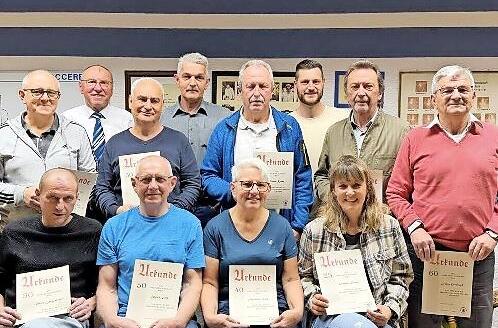 Folgende Mitglieder wurden geehrt: Für 25 Jahre: Corinna Daum und Fabian Tippelt; für 40 Jahre: Klaus Ebert, Jutta Emrich, Angelika Kalb und Stefan Scholl; für 50 Jahre: Alexander Emrich, Gerhard Emrich, Ulrich Kalb, Peter Lengenfelder und Herwig Spurny; für 60 Jahre: Franz Großkopf, Alfred Krebs, Eduard Krebs und Erwin Motz.