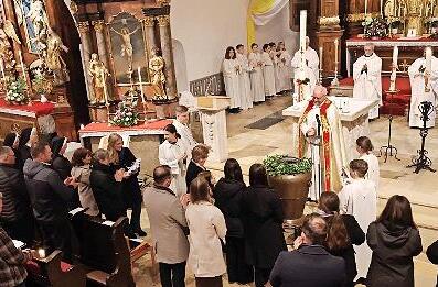 In der Osternacht mit ihren langen und abwechslungsreichen Zeremonien konvertierten drei Jugendliche in die katholische Kirche und wurden durch Stadtpfarrer Kilian Kemmer aufgenommen und von Kirchenpflegerin Tanja Schwägerl und der Pfarrgemeinderatsvorsitzenden Karola dos Reis Goncalves begrüßt. Diese bedankte sich auch am Ende bei den Geistlichen der Pfarrei für ihren Dienst und wünschte sich begleitet vom Applaus der vollen Kirche, mit ihrem Pfarrer und seinen Unterstützern auch in den nächsten Jahren Ostern feiern zu können.