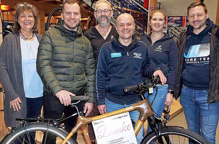 Mit dem Gewinner freuten sich auch die Zweite Vorsitzende der FöWe und Geschäftsführerin von Print Line, Sabine Marx, sowie Christian Weiß von Radsport Nagel. Für den Gewinner ist es das erste E-Bike mit dem er, nachdem der Sattel auf die richtige Höhe gebracht worden, auch gleich zu sich nach Hause radelte.