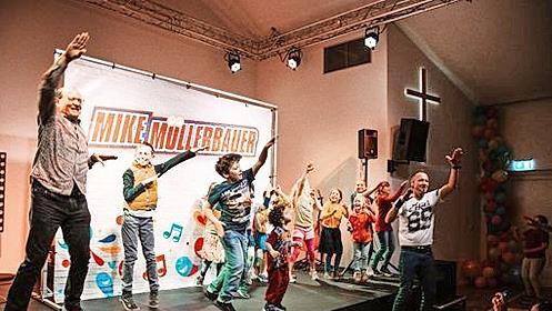 Rund 250 begeisterte Besucher feierten zusammen mit dem Augsburger Liedermacher Mike Müllerbauer zwei Familienmitmachkonzerte im CVJM Mühlhausen. Mit...