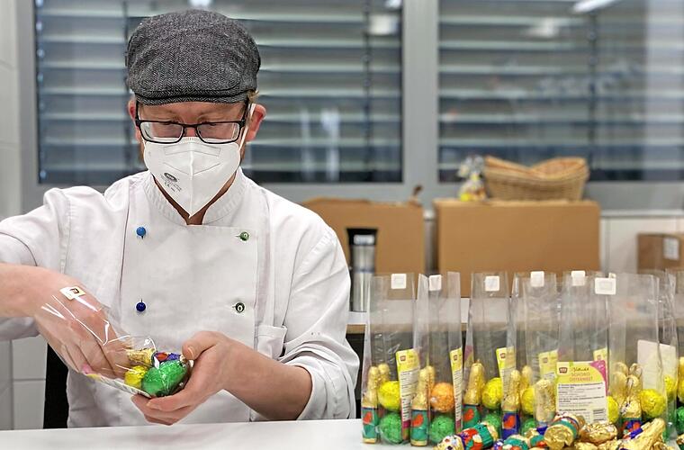 Die Regnitz-Werkstätten der Lebenshilfe Erlangen sind vor allem bekannt für ihre Schreinerei, die Eigenmarke "Fisch mit Hut" sowie Dienstleistungen wie das Catering für Kindergärten und Schulen. Aber schon etliche Jahre gibt es auch eine Lebensmittelkonfektionierung, die 2008 aus einer Kooperation mit der Minderleinsmühle in Neunkirchen entstanden ist. Gerade war saisonbedingt viel zu tun: Die Mitarbeitenden stellten 26 600 kleine und 12 600 große Ostertüten für den Biobetrieb fertig. 17 Frauen und Männer sind aktuell in diesem Bereich beschäftigt. Sie müssen sehr sorgfältig arbeiten und strenge Lebensmittelhygienerichtlinien einhalten. Zu den Hauptaufgaben gehört das Verpacken von Lebensmitteln wie Naschereien zu Ostern und Weihnachten . Zudem werden Bio-Mehle, trockene Lebensmittel wie Reis , Kichererbsen, Cornflakes, Linsen und Nüsse abgefüllt. Hinzu kommen Kräuter und Gewürze . Die wichtigsten Kunden sind die Minderleinsmühle und die Firma Bananeira. Letztere arbeitet teilweise inklusiv im direkten Kontakt mit den Mitarbeitenden mit Beeinträchtigung zusammen. Foto: PR