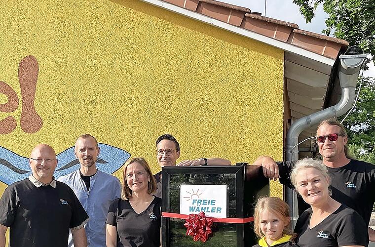 Der Gewinn aus dem Dorffestival ist in einen Kühlschrank geflossen. Das Foto zeigt die Spender bei der Übergabe mit dem Hemhofener Jugendpfleger Jörg Thiergärtner und der Vorstandschaft der Freien Wähler Hemhofen-Zeckern.