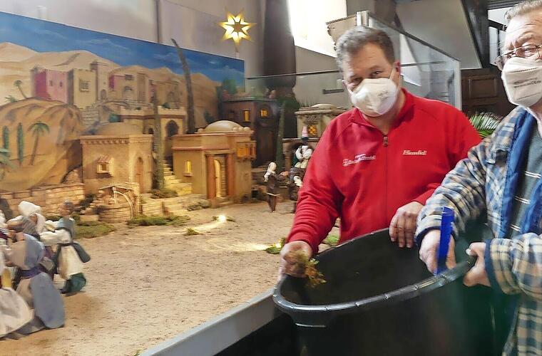 Eine Arbeitsgruppe um den Vorsitzenden Hans Schmitt und Karin Andree hat es in diesem schwierigen Jahr übernommen, die Kirchenkrippe aufzubauen. Allerdings können, bedingt durch die Umstände, nicht alle Szenen (wie in den Jahren zuvor) gezeigt werden.