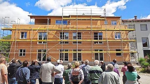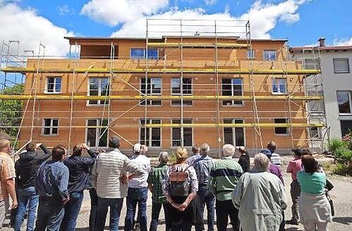 Als praktische Beispiele vor Ort konnten zwei sich im Bau befindende Holzbauobjekte besichtigt werden. Auf dem ehemaligen Baywa-Gelände sowie der früheren Brauerei Finster schafft man in Burghaslach modernen, umweltfreundlichen und altersgerechten Wohnraum im Ortskern.