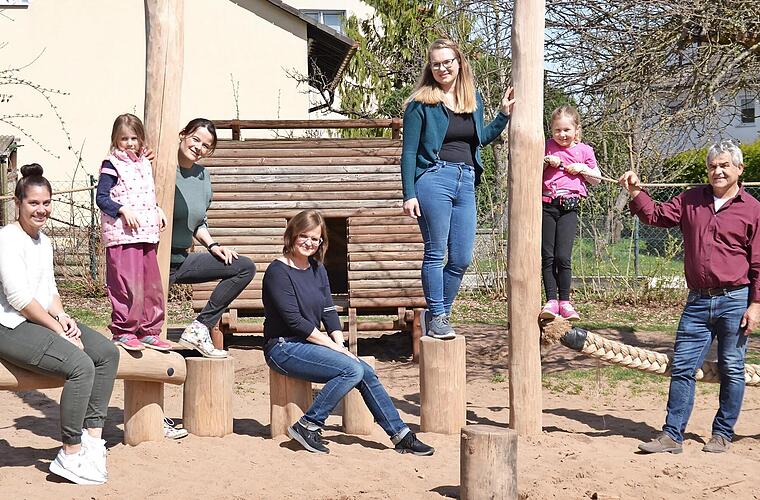 Vor Ort trafen sich die Vorsitzende des Fördervereins, Liane Lori, und ihre Stellvertreterin Ilona Ritter mit Bürgermeister Ludwig Nagel, der Krippenleiterin Susan Kübrich und der stellvertretenden Kindergartenleiterin Lisa Dickel. Gemeinsam konnte man sich davon überzeugen, wie gut die neuen Schaukeln, die neuen Kletter- und Balancierstrecken sowie die zusätzlich angeschafften Tische und Bänke bereits angenommen werden.