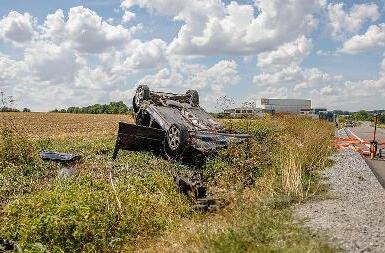 Dienstagnachmittag ist es auf der B 470 zu einem schweren Verkehrsunfall gekommen. Ein 64-jähriger war laut Polizeibericht von Gerhardshofen Richtung Neustadt/Aisch unterwegs und kam mit seinem Pkw in Höhe der Abzweigung Pahres aus ungeklärter Ursache auf die linke Fahrbahnseite. Dort streifte er an der Leitplanke entlang. Zu diesem Zeitpunkt näherte sich im Gegenverkehr ein Betonmischer. Dessen Fahrer versuchte noch vergeblich, in Richtung Fahrbahnmitte auszuweichen. Der Pkw prallte trotzdem seitlich gegen den Lkw, wurde ausgehoben und überschlug sich im Grünstreifen. Der Pkw-Fahrer wurde leicht verletzt, seine 89-jährige Mitfahrerin schwer. Der Sachschaden beträgt ca. 30.000 Euro. Die Bundesstraße war vorübergehend für den Verkehr gesperrt. Foto: News 5/Oßwald