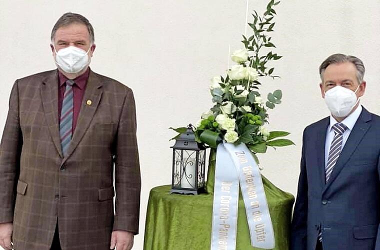 Auch der Markt Weisendorf beteiligte sich an dem Gedenken . Da Kontakte ja coronabedingt vermieden werden sollen, gedachten Landrat Alexander Tritthart und Bürgermeister Karl-Heinz Hertlein um 8 Uhr am Rathaus der Pandemieopfer. „Das ist ein Tag des Innehaltens, des Abschiednehmens, eine wichtige Station auf dem Weg durch die Trauer “, erklärte Landrat Tritthart.