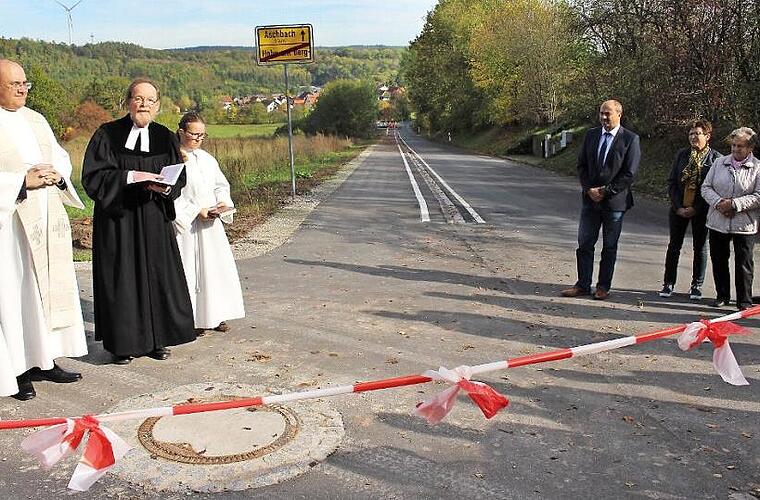 "Das Ziel war der Weg", kehrte Johannes Krapp die bekannte Losung um. Für die Stadt sei klar gewesen: Zunächst mussten Wasser und Abwasser für den oberhalb Aschbachs gelegenen - nur 85 Einwohner zählenden - Ortsteil erledigt werden. Dann erst könne der Weg in Angriff genommen werden. Noch fehlt auf einer kurze Strecke von etwa 30 Metern ein Geländer, das aufgrund der Böschungshöhe notwendig wird. Dann aber können Fußgänger und Besucher des Altenwohnheims den Weg "auf den Berg" uneingeschränkt genießen. Denn bisher sei der Weg nach Hohn, unbeleuchtet und auf einer schmalen Straße, für Fußgänger nicht ungefährlich gewesen, erklärt Bürgermeister Krapp.