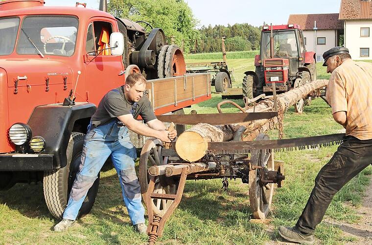 Am Sonntag, 27. Mai, beginnen um 10 Uhr der Festbetrieb und das Oldtimertreffen. Bei der Vorführung historischer Geräte zur Holzernte und -bearbeitung läuft auch ein rund 100 Jahre altes mobiles Sägewerk. Mit manuellen Ziehsägen wird die damals harte Waldarbeit demonstriert. Im Vergleich dazu kommen auch modernere Geräte zum Einsatz, um dem Publikum die Entwicklung der Holzbearbeitung zu veranschaulichen.