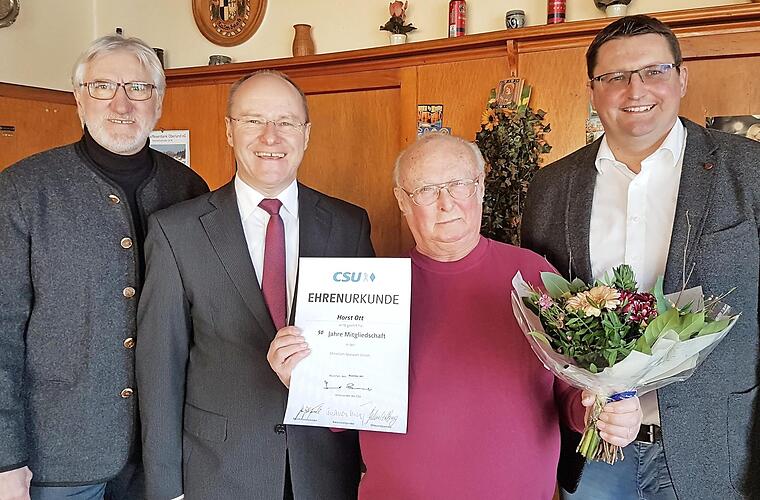 Horst Ott aus Tannenwirtshaus gehört seit 50 Jahren dem CSU-Ortsverband Helmbrechts an. Der Jubilar freute sich sehr über den Besuch von Wolfgang Feilner, N...