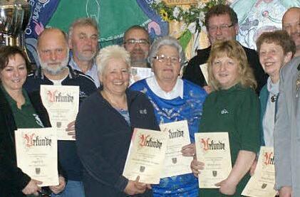 Für herausragende sportliche Leistungen auf Gau- und Bezirksebene für den Schützenverein Hubertus Grooßenbuch wurden Christine Schneider Knapp, Bernd Hofmann und Gabriele Bader mit Urkunden und Nadeln ausgezeichnet.