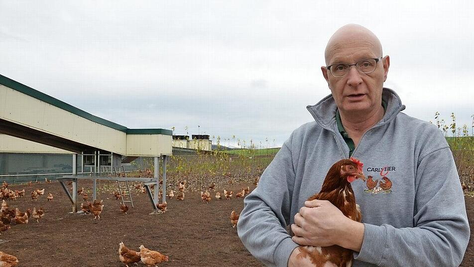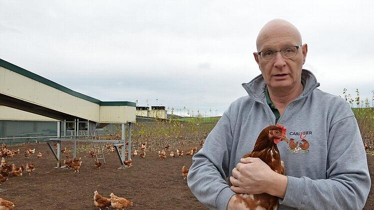 Stefan Carl steht inmitten Hunderter Hühner. Es ist das Gelände für die Freilandhaltung seines Betriebes bei Lohhof. Wenn er an die Vogelgrippe denkt, dann ist es dieser Betriebsteil, der ihm besondere Sorgen macht. "Am besten wäre es, wenn wir die Tiere über den Winter alle im Stall lassen würden", sagt er. Doch er weiß: Der Verbraucher verlangt nach Eiern aus Freilandhaltung und nach Bio-Eiern.