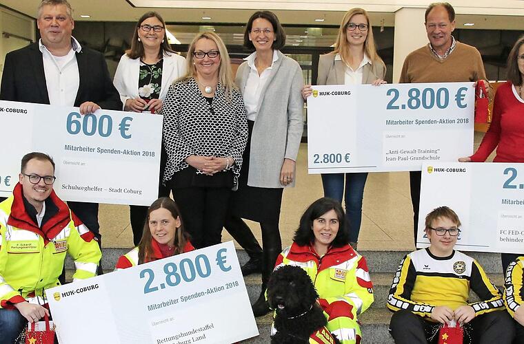 Jeweils 2800 Euro gingen an den FC FED OLÈ, an das Projekt "Anti-Gewalt-Training" der Jean-Paul-Schule, und die Rettungshundestaffel des Arbeiter-Samariter-Bundes. Über 600 Euro durften sich die Coburger Schulweghelfer freuen.