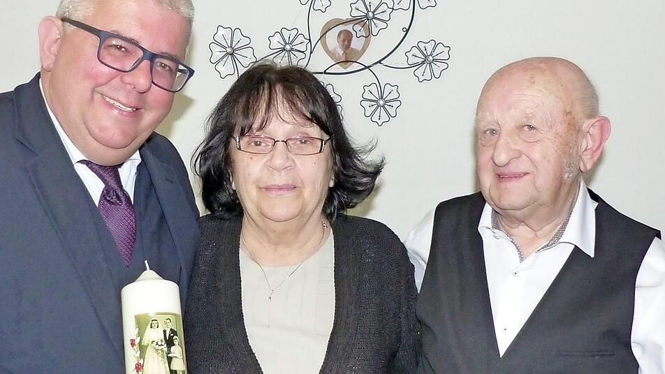 Zu den Gratulanten zählte auch der Dritte Bürgermeister Wolfgang Metzner (SPD). Er beglückwünschte das Jubelpaar im Namen der Stadt zum Ehejubiläum und überreichte neben zwei Flaschen Wein auch Blumen.