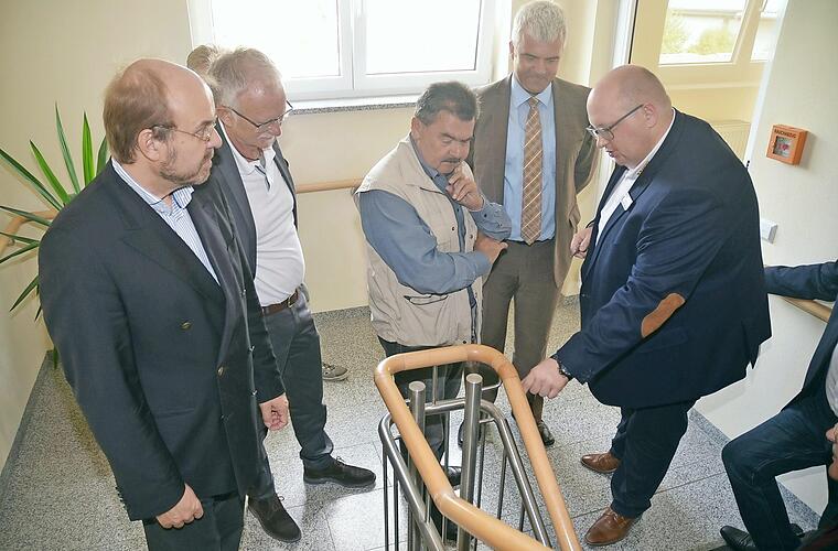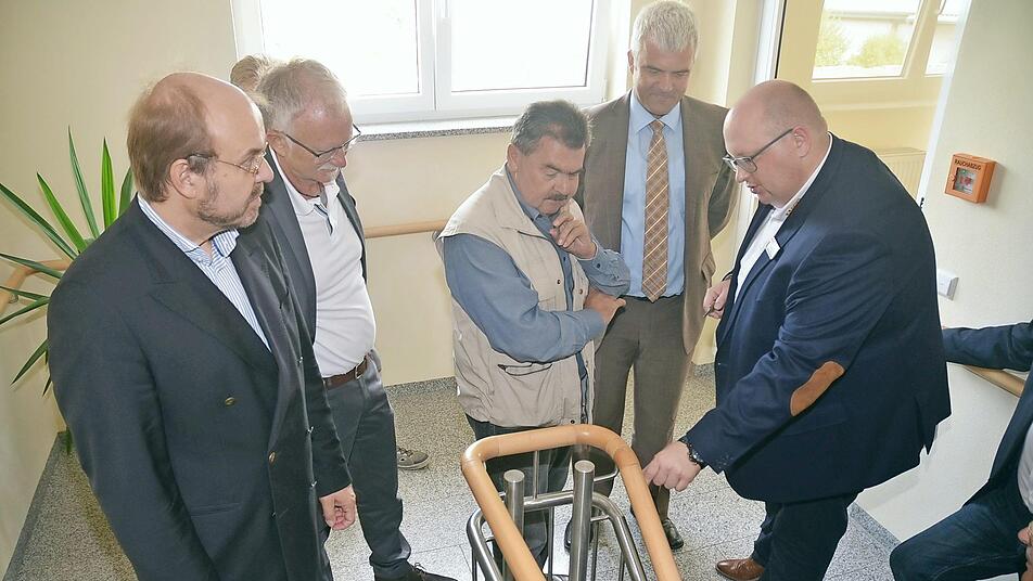 Geschäftsführer Roland Funk, sein Stellvertreter Ingo Holzmann sowie die Einrichtungsleiterin Anna Schneider und Pflegedienstleiterin Christina Engelhardt (ASB Seniorenzentrum Rothenkirchen) führten die Gäste durch das Seniorenzentrum. Das Haus ist mit 57 Bewohnern voll belegt, im Obergeschoss befinden sich 30 Bewohner in einer offenen Station, im Erdgeschoss wohnen 27 Senioren in einer beschützenden Station. Funk ging auf den Platzmangel ein. Vor allem Kurzzeitpflegeplätze seien Mangelware, da das Haus das ganze Jahr über ausgebucht ist. Er zeigte aber auch auf, mit welchen Auflagen es Heime zu tun haben, so soll der Handlauf am Gelände im Treppenhaus vom EG ins OG um zwei Zentimeter tiefer verlegt werden, da sind im Handumdrehen gleich 15 000 bis 20 000 Euro verschwunden.