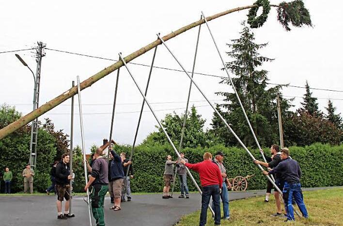Da es diesmal leicht nieselte, ging alles schneller, und keiner schwitzte so richtig beim Aufrichten unter der Leitung von Markus Ziegler. In 45 Minuten stand der Baum wie eine Eins.