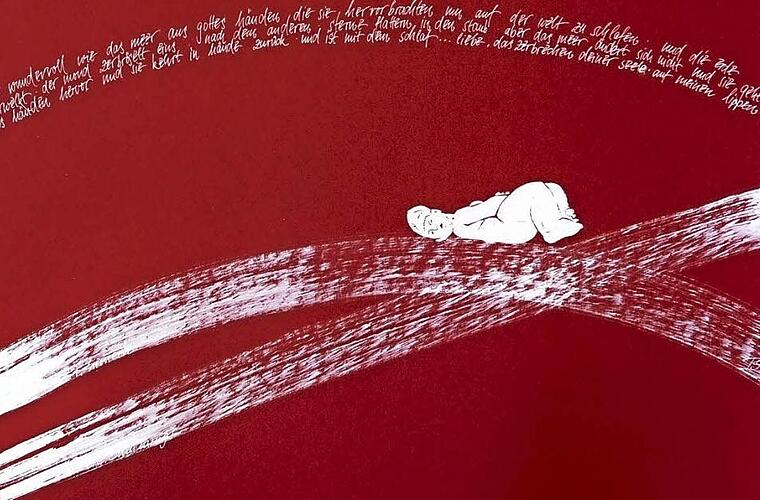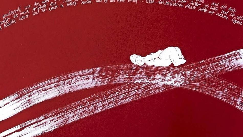 Die Meininger Künstlerin Eva Skupin wiederum fing die poetischen Flügeleien in Bild und zweierlei Text mit inspirierten Kalligraphien ein, auf sinnlich rotem Papiergrund.