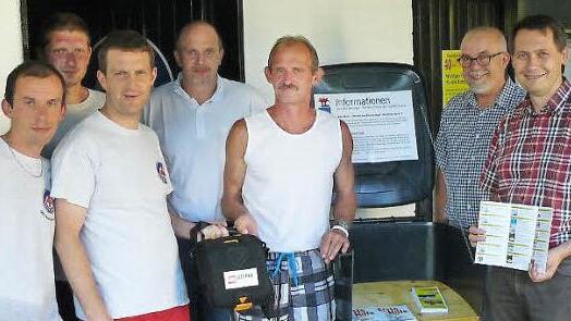 Defibrillator für mehr Sicherheit Zusätzliche Sicherheit bietet im Stadtsteinacher Schwimmbad der kürzlich angeschaffte Defibrillator, der - von der Wasserwacht angeregt - beim Badebetrieb ständig einsatzbereit im Wasserwachtraum zur Verfügung steht. Im Sommer ist er im Bad, im Winter in der Steinachtalhalle stationiert.