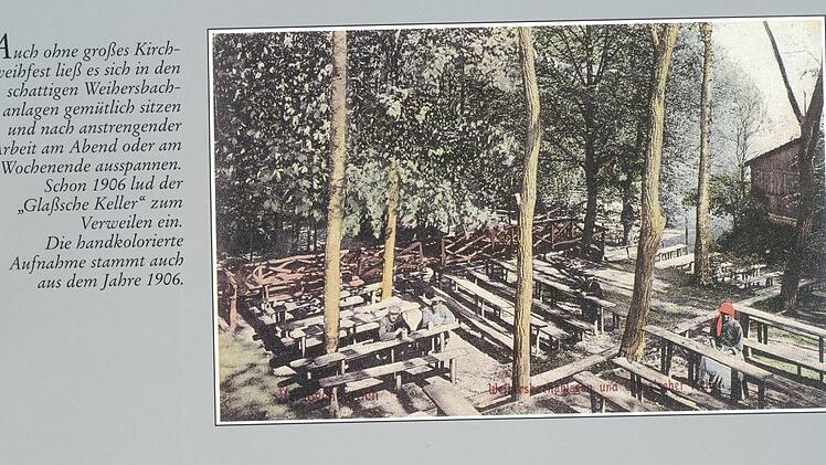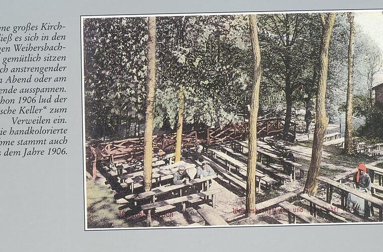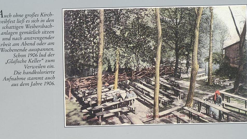 Schon im 19. Jahrhundert traf man sich zur Sommerszeit nicht im Keller, sondern "auf dem Keller" (für Nichtfranken unerklärlich) zu Bier und Brotzeit. Ein kolorierte Postkarte aus dem Jahr 1906 zeigt Besucher auf dem Glaß'schen Keller (damals noch nicht überdacht), wo man sich zum Ausklang eines arbeitsreichen Tages sein wohlverdientes Bier gönnte.