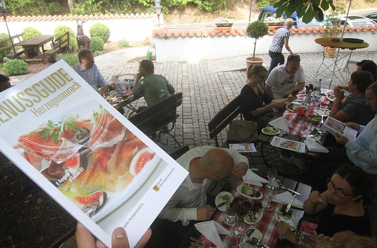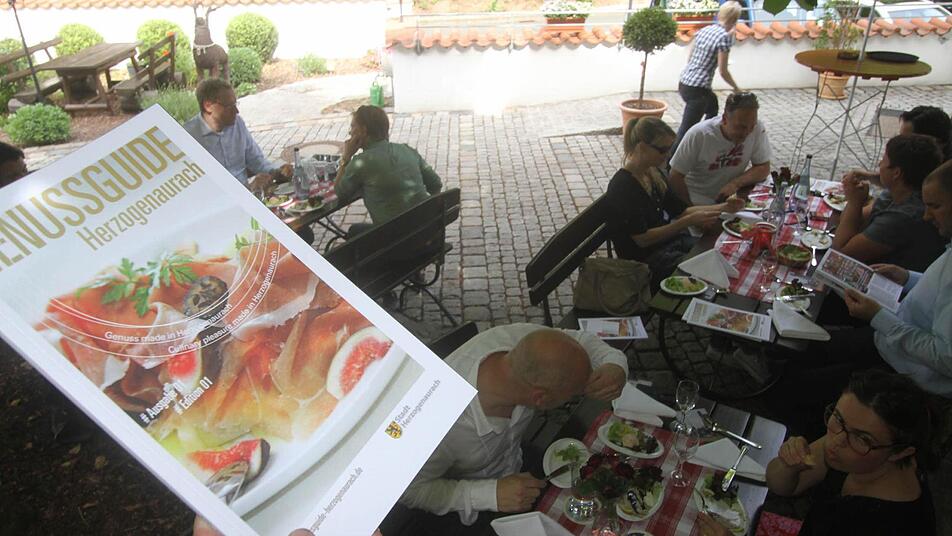 Es gibt Termine, die sind einfach angenehm. Bei einem Glas Wein, einem perfekten Amuse-Gueule und sommerlichen Temperaturen eine neue Idee vorzustellen, gehört sicher dazu. Das mussten sich zumindest die Gastronomen denken, die sich in einem Landgasthof in Herzogenaurach trafen, um zusammen mit dem Bürgermeister German Hacker (SPD) und den Vertretern des Amtes für Stadtmarketing und Kultur erstmalig den neuen "Genussguide Herzogenaurach" vorzustellen.