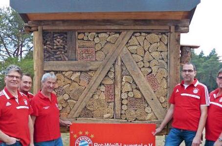 In vielen Arbeitsstunden bauten Vorsitzender Michael Mangold, Wendelin Mangold, "Tipp-Spielleiter" Dominik Haas, Karl-Heinz Haas, Johannes Then, Christoph Föller und Guido Mangold vom Burgläurer Bayern-Fan-Club die Nist- und Überwinterungshilfe für Insekten.