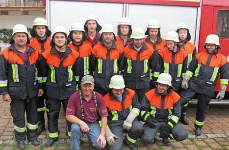 Auch Kommandant Georg Körber und Vorsitzender Karl Vogel freuten sich über die große Schar tüchtiger, junger Feuerwehrleute.