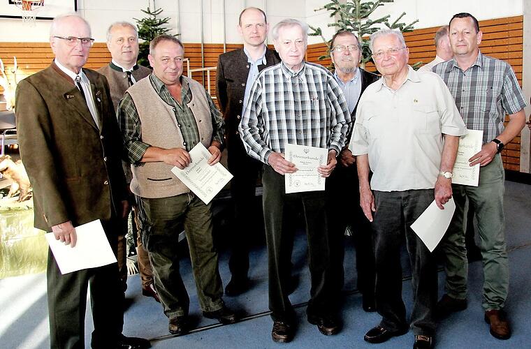 Eigentlich hätte Michael Welker nach 20 Jahren als Vorsitzender sein Amt gerne in jüngere Hände gelegt. "Die Kreisjägerschaft braucht einen Umbruch, mit jungen Leuten und neuen Ideen", erklärte Welker. Da sein Stellvertreter Heinrich Schuler, Schriftführer Jochen Kämpf und Schatzmeisterin Angelika Kratz sowie die bisherigen Beisitzer nicht mehr kandidierten, ist ihm die Verjüngung zumindest zum Teil gelungen. Die Ehrengäste wurden von den Jagdhornbläsern unter der Leitung von Helmut Heller musikalisch begrüßt, die auch die Ehrungen umrahmten.