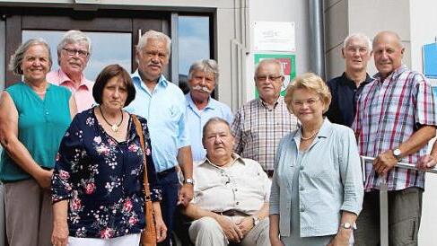 Ein Klassentreffen veranstalteten die 70-Jährigen (Jahrgang 1949) aus Limbach. Sie tauschten dabei Erinnerungen von früher sowie Erlebnisse aus ihrem weiteren Lebensweg aus. Die Teilnehmer trafen sich an der Wallfahrtskirche Maria Limbach, wo sie auch die Gräber der Eltern und Schulkameraden im Friedhof aufsuchten. Der Zweite Bürgermeister von Eltmann, Hans-Georg Häfner (links), empfing die Gruppe im Ritz und berichtete über Aktuelles aus dem Stadtgeschehen. Zum dritten Mal fand das Treffen des Limbacher Jahrgangs 1949 statt, das Berthold Beck und Werner Geisel organisiert haben. Foto: gg