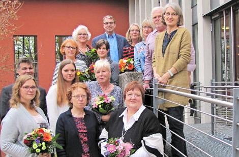 Für zehn Jahre wurden geehrt: Yvonne Nehlert, Matthias Emmer, Judith Bohl und Gabriele Forkel. 20 Jahre sind es bei Barbara Amberg-Klaus, Kerstin Süße. Die Silberjubilare (25 Jahre) sind Rita Schedel, Anja Kellerhoff und Achim Teuber.