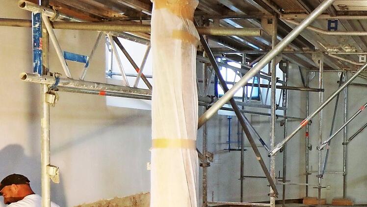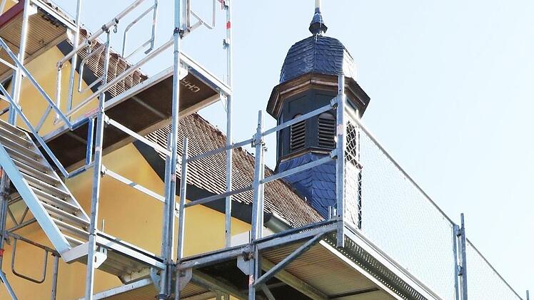 In dieser Woche werde das Dach aufgemacht. Für die Arbeiten musste die Kirche innen und außen eingerüstet werden. Nach Beseitigung der Schäden werden sich Maler- und Stuckarbeiten im Kircheninneren anschließen.