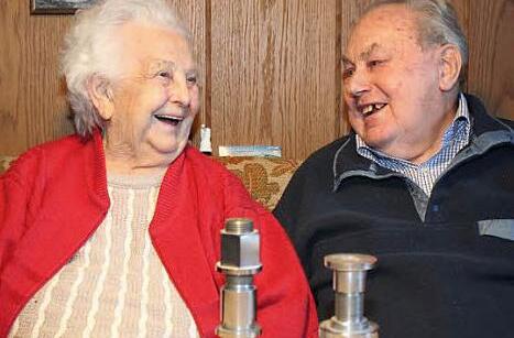 Mit 14 ging er nach Nürnberg, um dort den Beruf des Schlossers zu lernen. "Es war damals schwierig, eine Ausbildungsstelle zu bekommen", erinnert sich Lämmlein. Bereits im Alter von 17 Jahren wurde er zur Wehrmacht eingezogen - es ging an die Ostfront. "Das Schlimmste war gar nicht die Angst, sondern der Hunger und der wenige Schlaf", erzählte Georg Lämmlein. "Aber du hast es überstanden", warf Ehefrau Rosa ein. 1945 wurde Lämmlein bei Stettin schwer verwundet. 1947 ging er zurück nach Nürnberg und suchte sich Arbeit. Er besuchte Abendkurse, machte seine Meisterprüfung und fand eine Anstellung als Betriebsleiter. "Da lernte ich meine liebe Frau Rosa kennen und wir heirateten 1954", erzählte Lämmlein.