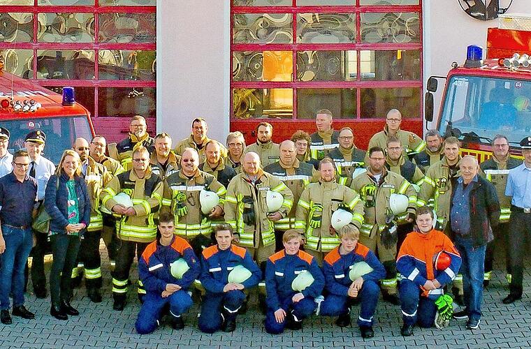 Danach ging es ins Gerätehaus in der Alten Reichsstraße, wo die Aktiven bereits in Einsatzkleidung angetreten waren. Kreisbrandinspektor Hermann Schuberth, unterstützt von Kreisschirrmeister Richard Dumsky, Kreisbrandmeister Thomas Petterich und Kreisbrandmeister Alexander Klose, überprüften die Ausrüstungsgegenstände, die Einsatzkleidung, die Mannschaftsstärke und den Ausbildungsstand. Roland Dauer widmete sich derzeit der Jugendfeuerwehr. Die Überprüfung ergab bei Mannschaft und Gerätschaft keine gravierenden Mängel, jedoch wurde das Fehlen einer Abgasabsauganlage in der Fahrzeughalle für die Einsatzfahrzeuge erneut durch die Mannschaft und der Inspektion moniert.