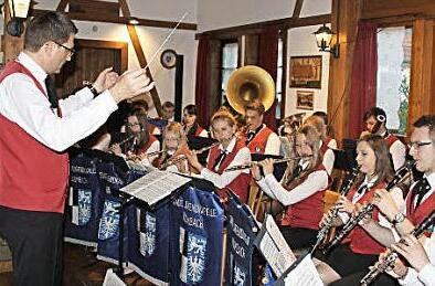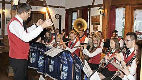 Die Jugendkapelle stieg mit dem Schönfeld-Marsch und dem Slavnosti-Walzer in den schwungvollen Konzertabend ein. Bei der Dompfaff-Polka bat Harald Streit das Publikum, kräftig mitzupfeifen, was großen Anklang fand und gerne erledigt wurde.