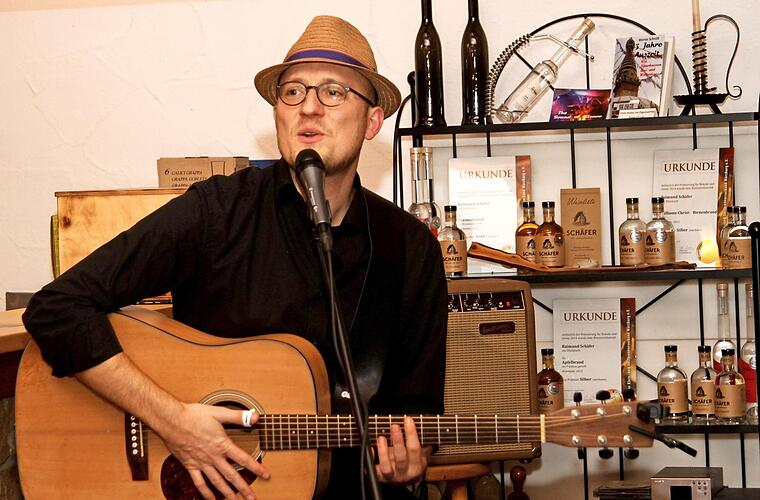 Julian Rombach betätigte sich für den einen oder anderen Zuhörer als wahrer Seelenwärmer. Das galt bei "Country roads" von John Denver ebenso wie bei "Halleluja" von Leonhard Cohen und bei "Sailing" von Rod Stewart. Der Künstler leitete immer wieder plaudernd von einem Song zum anderen über und gab so manche Anekdote zum Besten.