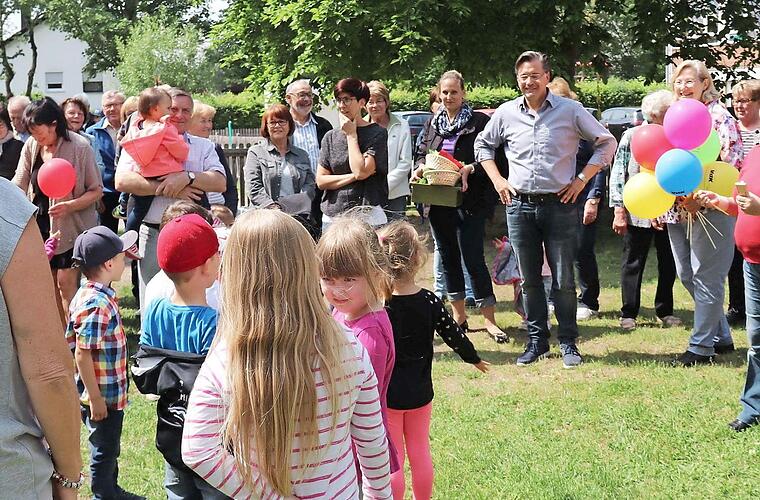 Auch Zweite Bürgermeisterin Jutta Köhler befand sich mit ihren zwei Enkelkindern unter den Tänzern. Der Bürgermeister konnte da noch nicht mithalten, aber er war begeistert von der Idee, dass Jung und Alt gemeinsam feiern.