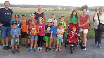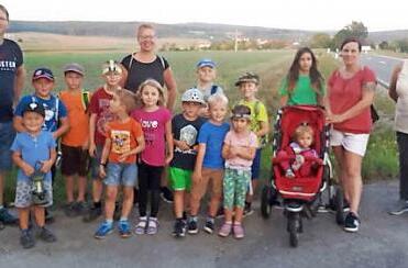 Im Rahmen des Ferienprogramms der Marktgemeinde hatten die Jungen Bürger wieder zu einer Nachtwanderung eingeladen. Zusammen mit Bürgermeister Wolfram Thein und der Gemeinderätin Doreen Büschel machten sich 13 Kinder mit Begleitung auf den Weg von Wasmuthhausen über die Biogasanlage durch den dortigen Grund nach Dürrenried.
