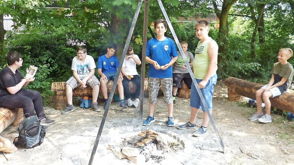 Eine neue Holzpergola mit angrenzendem Teich, Sitzgelegenheiten aus Euro-Paletten und Stadionsitzen sowie eine Grill- und Feuerstelle im neuen Abenteuer- und Forscherbereich der Schule bereichern nun das Schulgelände und laden zum Relaxen ein.