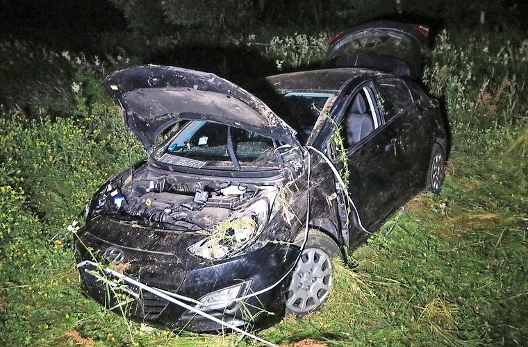 Das Auto setzte auf die abgesenkte Schutzplanke auf, wo der Pkw entlangrutschte, nach rechts kippte, sich mehrfach überschlug und auf einer tiefer gelegenen Wiese zum Stehen kam. Zwei Personen erlitten bei dem Unfall mittlere bis schwere Verletzungen, der Insasse auf der Rückbank kam nach Angaben der Polizei mit leichten Blessuren davon. Alle drei wurden durch den Rettungsdienst in ein Krankenhaus eingeliefert.