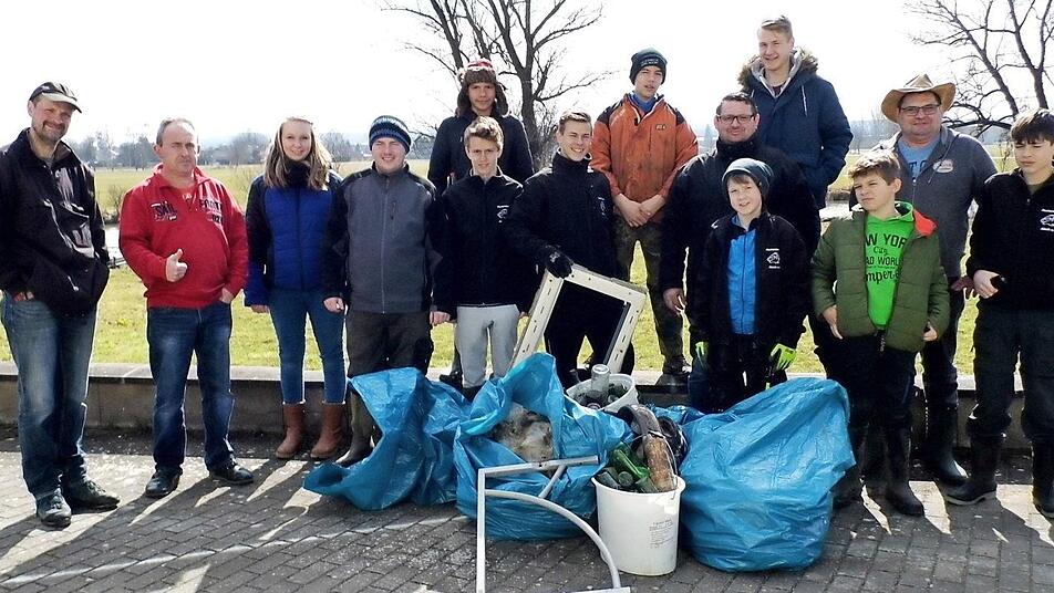 Eine leckere Brotzeit war am Ende der Lohn für die großen Mühen der kleinen "Müllmänner" am Umweltschutztag der Aischer Fischer. Zwei Mal im Jahr - im Frühling und im Herbst - rücken sie aus, um sämtlichen Unrat an der Aisch aufzuspüren und zu entsorgen. 15 Jugendliche wurden von fünf Erwachsenen unterstützt und waren einen Vormittag lang eifrig beim Sammeln. Von der Uttstadter Grenze bis zum Wehr in Medbach fanden sie wieder sehr viel Unrat, besonders auch Glasflaschen. Organisiert hatten es die Jungfischer, allen voran Jugendleiter Stefan Schleicher.